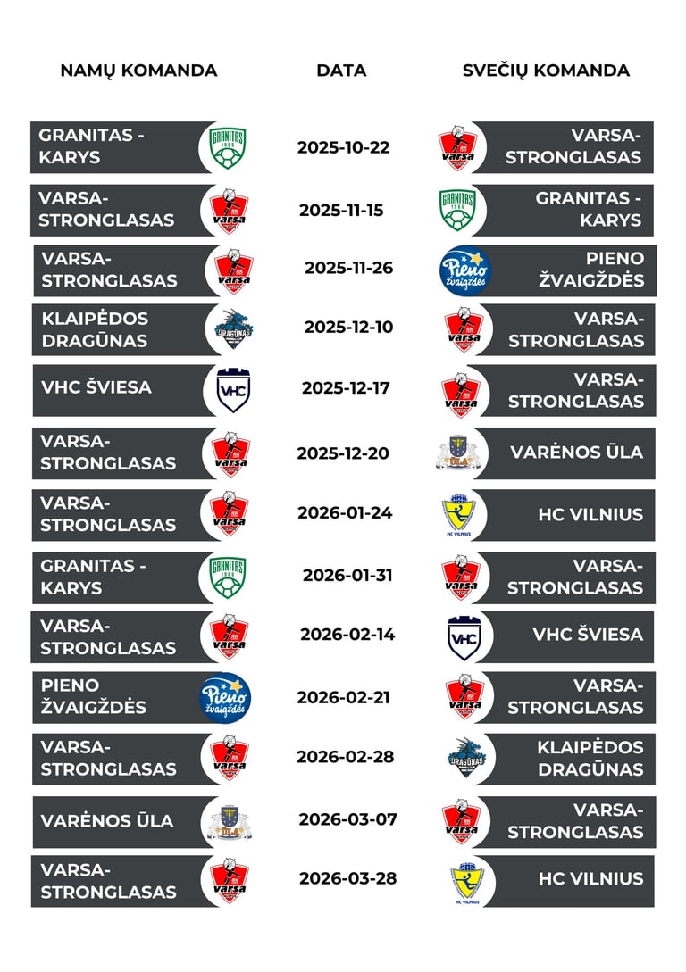LRL 25/26 sezono tvarkaraštis